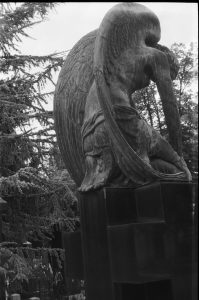 Za kraj mi ostaje da ufotkam muški akt na grobu nekog industrijalca, Palavičinijev. Natežem film i okidač na aparatu mi puca. Skupljam delove, očajan sam. Bojim se za film, da li je sve ovo bilo uzalud. Izlazim sa groblja sa jako lošim osećajem. Prvi put sam zašao u neke dalje parcele i osećaj je stvarno strašan biti tamo sam po oblačnom danu. Prošao sam i onu „dečiju“ parcelu o kojoj je neko pisao u novinama. Kakva užasna ideja uzeti to za vest kao mamac za klikove.