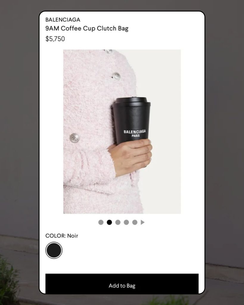 U pitanju je clutch koji imitira već postojeću Balenciaga reusable šolju za kafu (85 funti), a svojim oblikom i konceptom poigrava se elementima luksuza i svakodnevice – samo što u ovoj igri, cena učešća nije nimalo pristupačna.