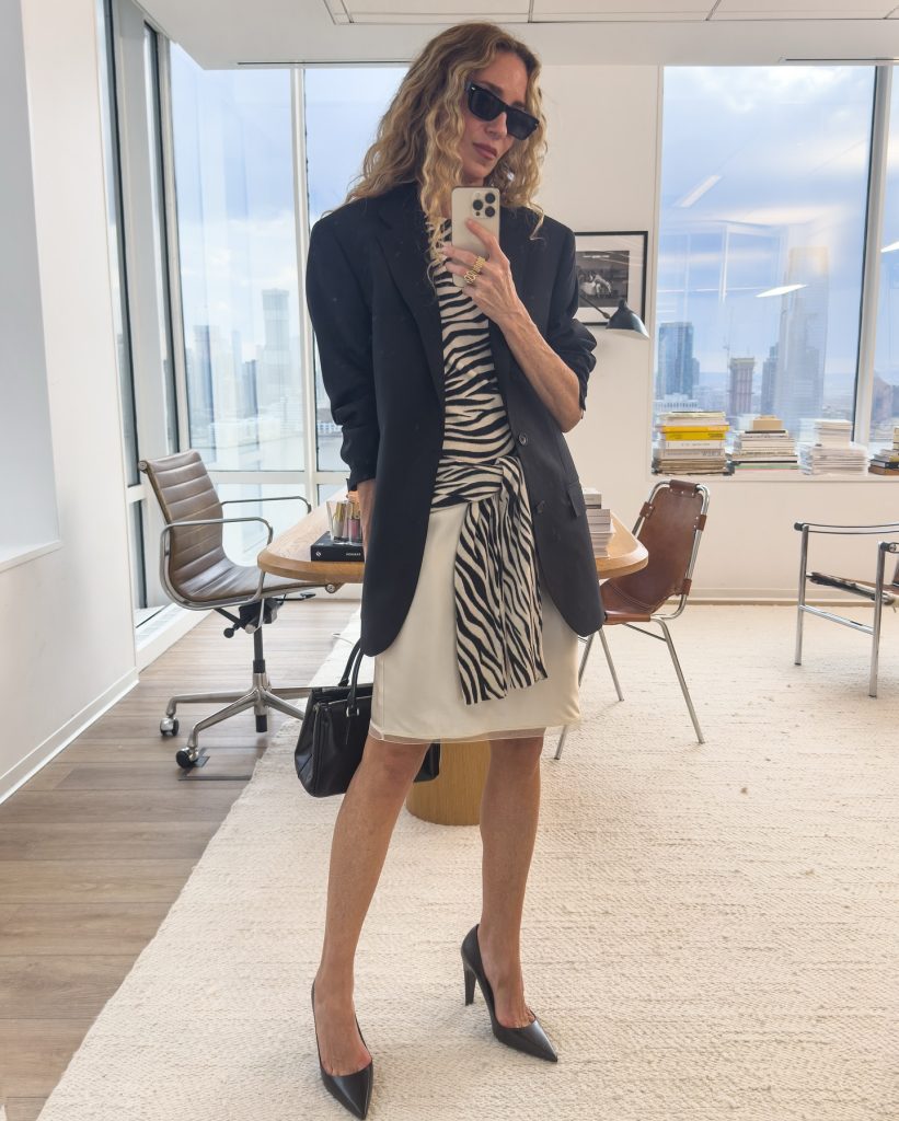 Stilski trik da autfit izgleda kohezivno: ispod sakoa obucite suknju i džemper, majicu ili bluzu u istom tonu. Osmelite se da to bude neka neočekivana nijansa.